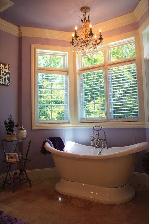 On the home’s second floor, you’ll find the four bedrooms and two full baths. With vaulted ceilings and a calming lavender color scheme, the master bedroom and adjoining bath create a relaxing haven from the day’s trials. A vintage claw foot bath, double headed rain shower and two sink vanities are designed with romance in mind.